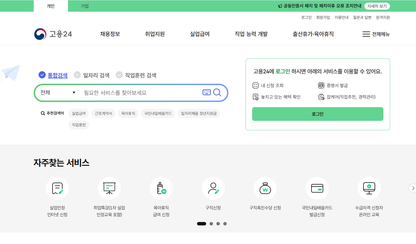 - 직업훈련, 일자리 추천, 면접 지원, 상담 등